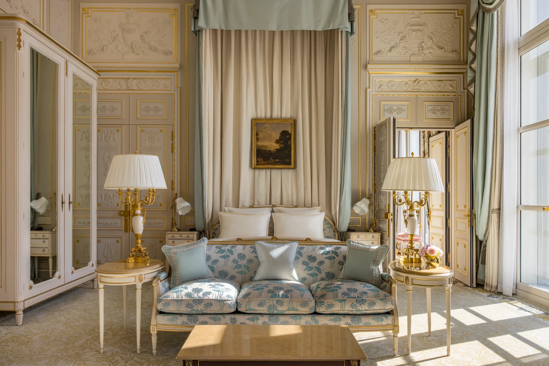 パリの宝石箱とも称される「ヴァンドーム広場」に面し、一歩足を踏み入れれば、そこはまるで18世紀の宮殿。金箔や豪華な装飾が施されたルイ16世様式の内装は、ため息が出るほどの美しさです。