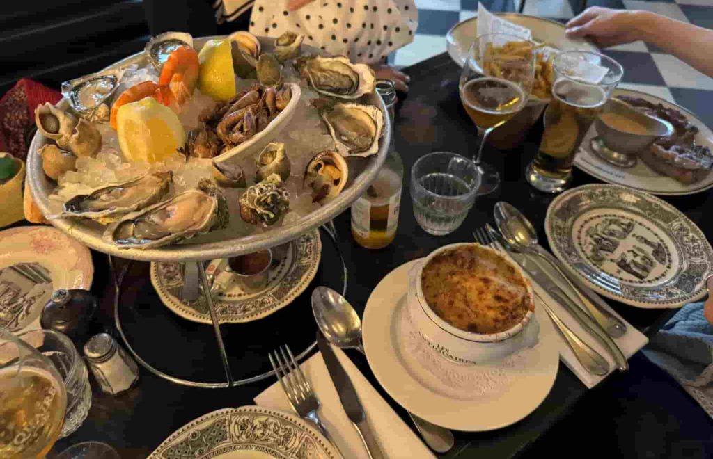 オルセー美術館のすぐ近くにあるフレンチビストロLes Antiquairesはカキなどの海鮮が美味しいことでも有名。