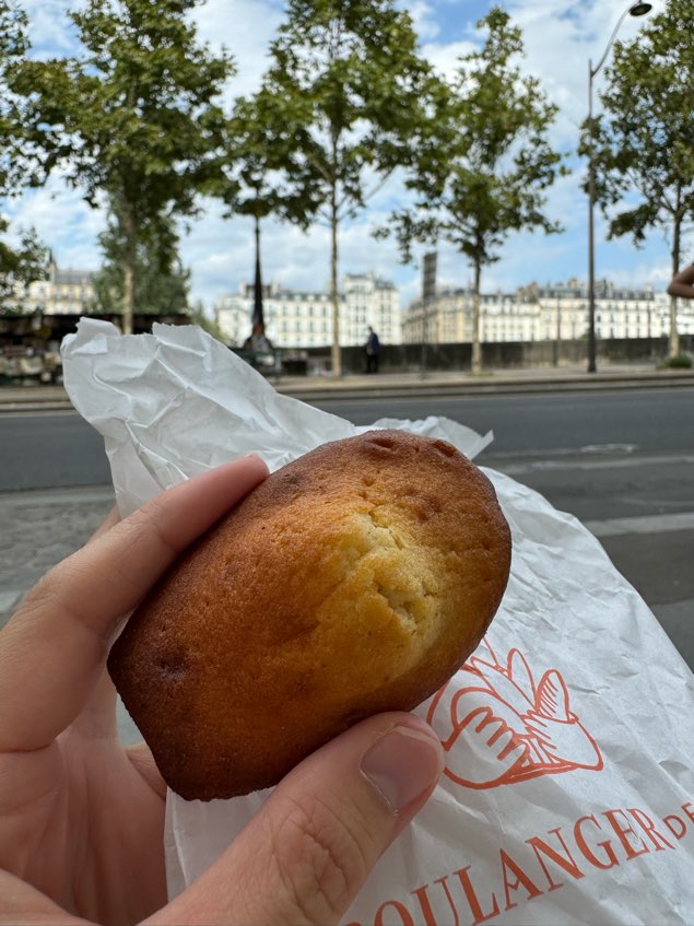 また、マドレーヌは人気商品のようで、たくさんの人が買っていましたが、しっとりとしていて程よい甘さでした。端の部分はサクっとしていてとても美味しかったです。