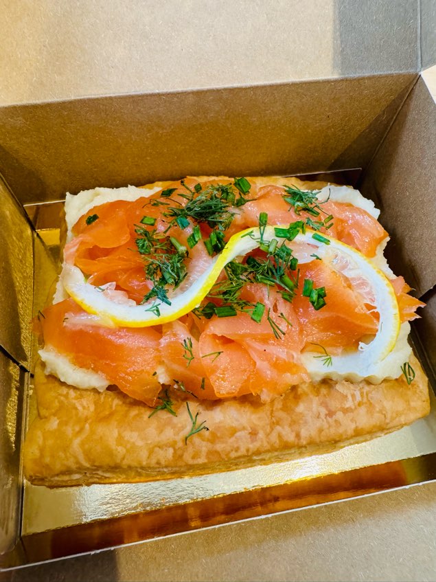 特に、サーモンのタルトは、パイ生地がサクサクで、バターの香り高く、サーモンの塩気と酸味のあるドレッシングと相まってとても美味しかったです。